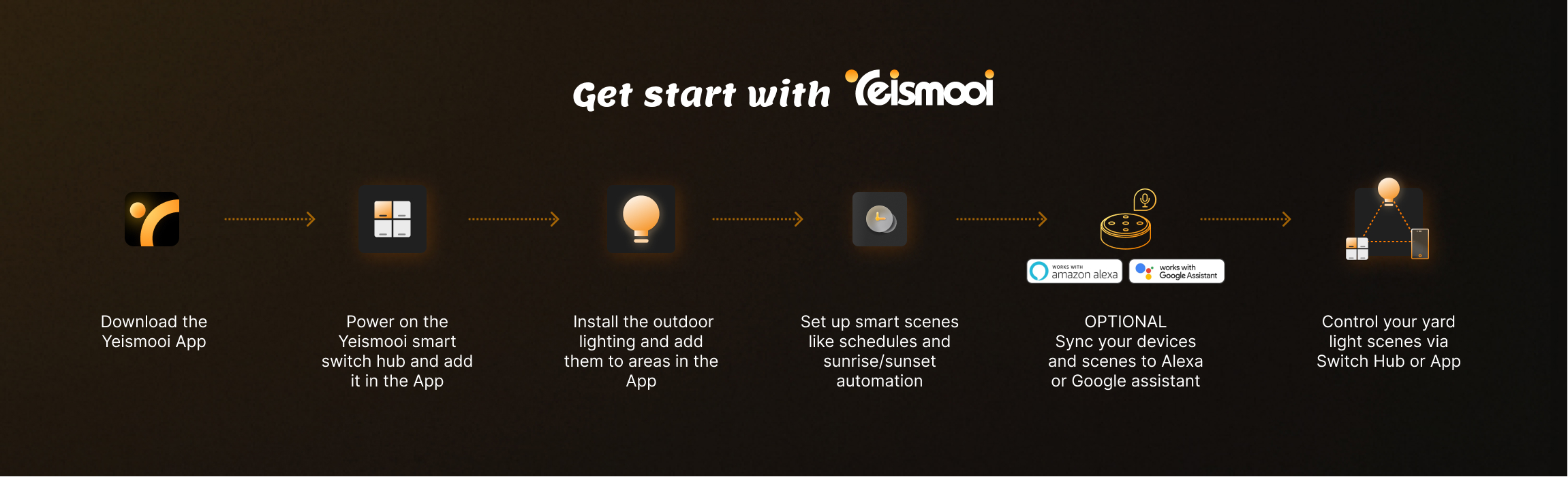 Voice Control allows you to control lighting devices and scenes using voice commands. Yeismooi supports Alexa and Google Assistant. Learn more here.